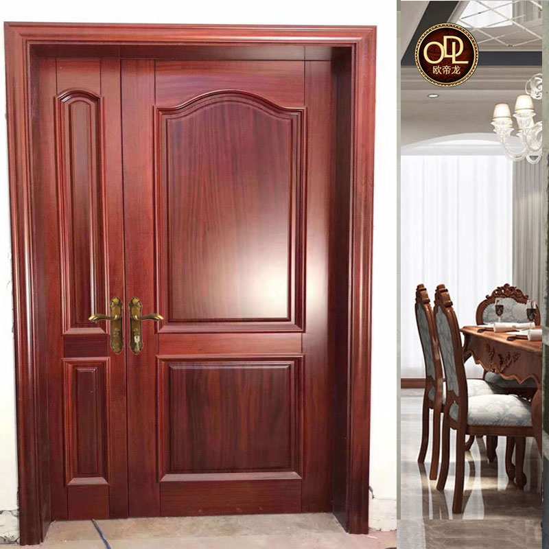 佛山實木門廠家直銷沙比利木門定制沙比利原木雕花雙開大門款